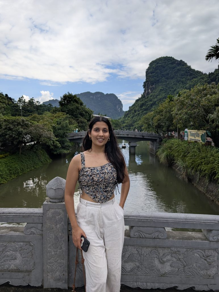 Now, I’m someone who usually saves new clothes for special occasions. At first, I wasn’t sure when to wear this one outfit, but then I thought, ‘I’ve already booked this trip, I don’t want to shop anymore, I have enough clothes.’ Then I remembered I had your corset, which I had kept aside, and I was like, this is perfect for Ninh Binh. I usually pre-plan all my travel outfits, so it felt right.